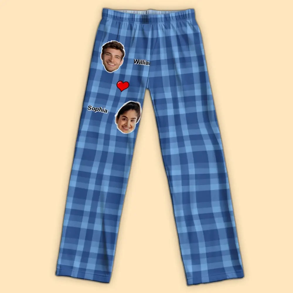 Custom Photo on Pajamapants - Personalised Heart Couples, Gift for Him, Her